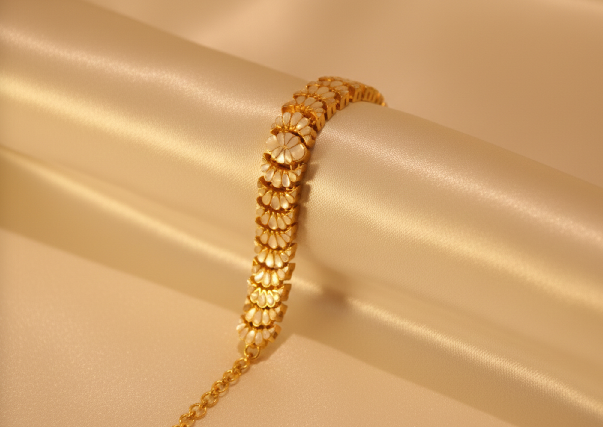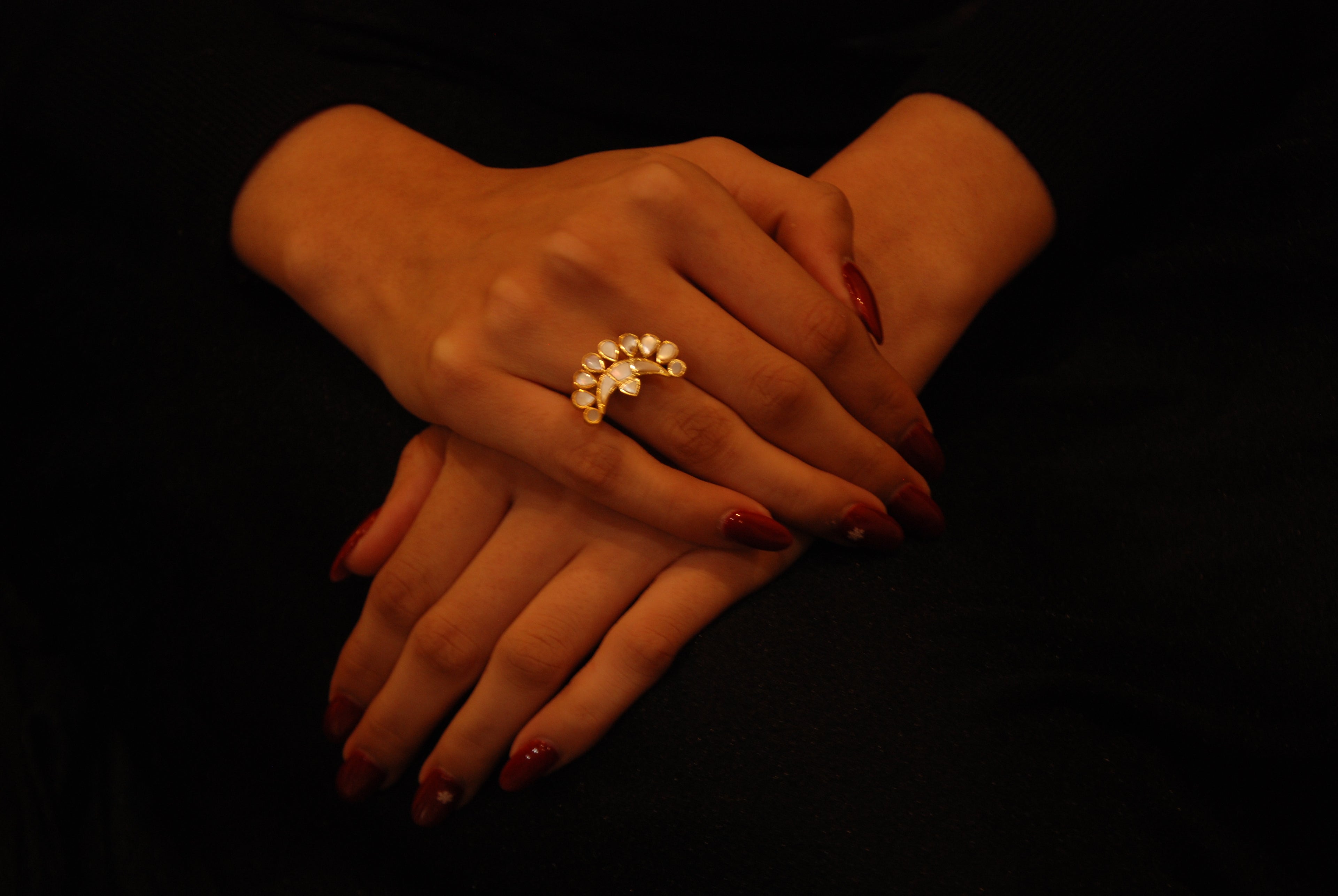"Inspired by the ethereal dance of moonlight on the ocean, the Moti-Maaya collection celebrates the 'enchanted pearl.' Each piece features hand-carved Mother of Pearl, capturing a spectrum of hidden hues within its snowy depths. It is jewelry designed for the modern woman who carries a touch of mystery and a legacy of grace."